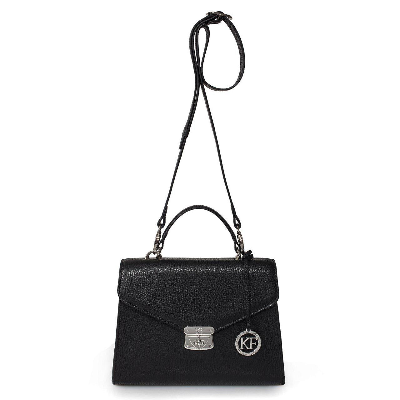 Delivery: In most cases our goods are shipped by FedEx or Ups Express. On rare occasions the goods might be shipped by Ukrposhta. The clients should check in advance an estimate of the amount of customs duty and value added tax. Black genuine leather handbag from ukrainian designer Katerina Fox. This model is designed for women who appreciate the sleek design combined with functionality and comfort. High-quality and reliable hardware ensure long service bags. The internal space of a bag is equipped with one spacious compartment and two patch-pockets and one zipper pocket. The bag is closed with a zipper. The bottom of the bag is protected with metal legs. There is a long handle that allows you to wear the bag on the shoulder. The kit also includes a storage bag.