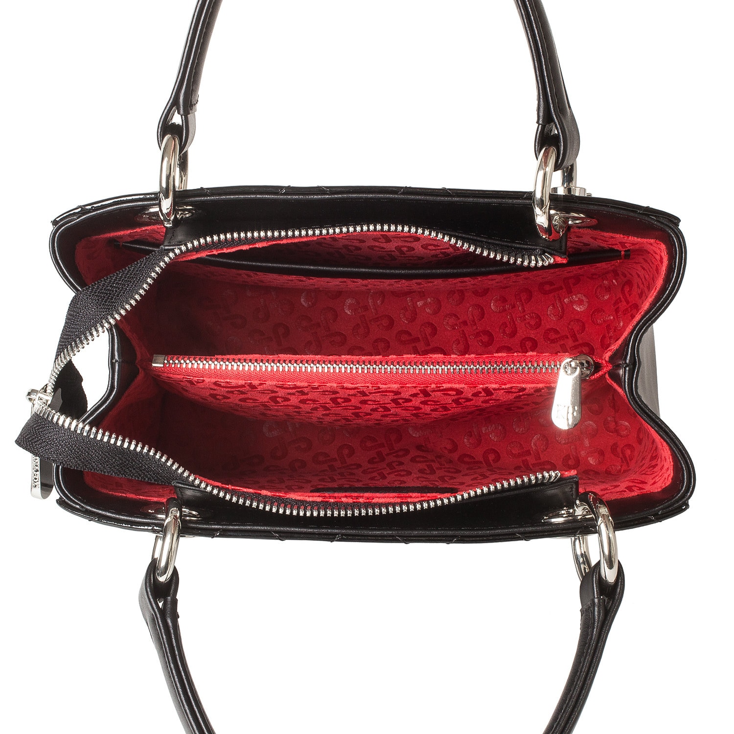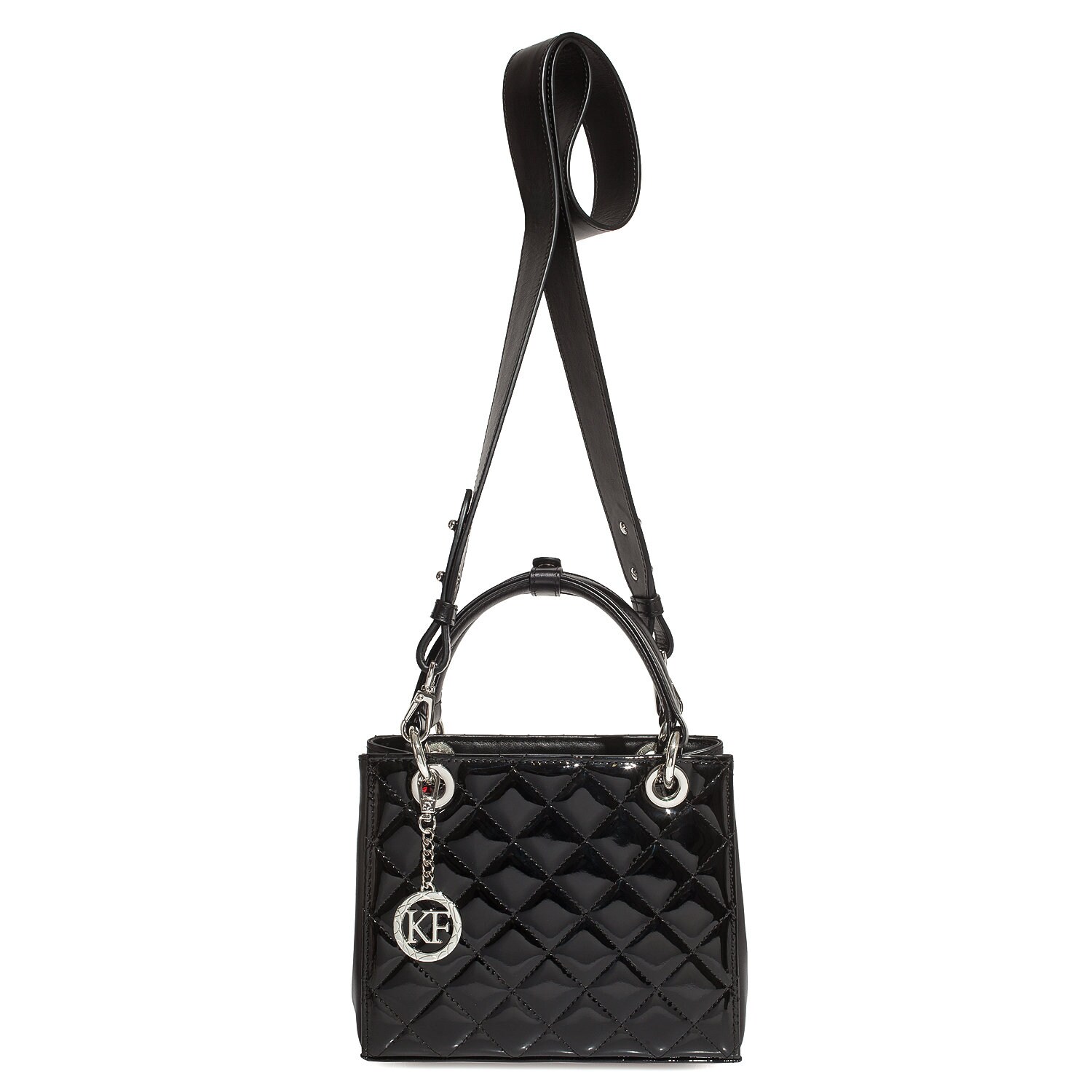 Black genuine leather handbag from ukrainian designer Katerina Fox. This model is designed for women who appreciate the sleek design combined with functionality and comfort. High-quality and reliable hardware ensure long service bags. Inside the bag are three spacious compartments, one with zip, two patch pockets and one zippered pocket closes with a zipper. The bottom of the bag protected by metal feet.