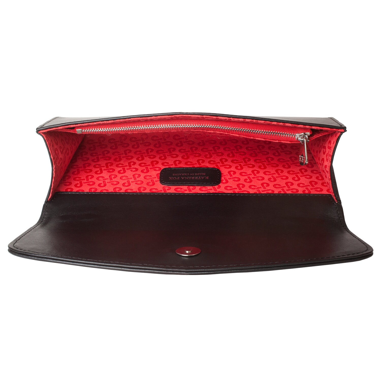Black genuine leather woman shoulder bag from ukrainian designer Katerina Fox. Stylish bag-clutch rectangular black with gold chain is perfect for evening dress for any cocktail dress. This bag-the clutch will add your elegance and luxury. Inside the bag one large compartment, one pocket with zipper that closes with a button magnet.