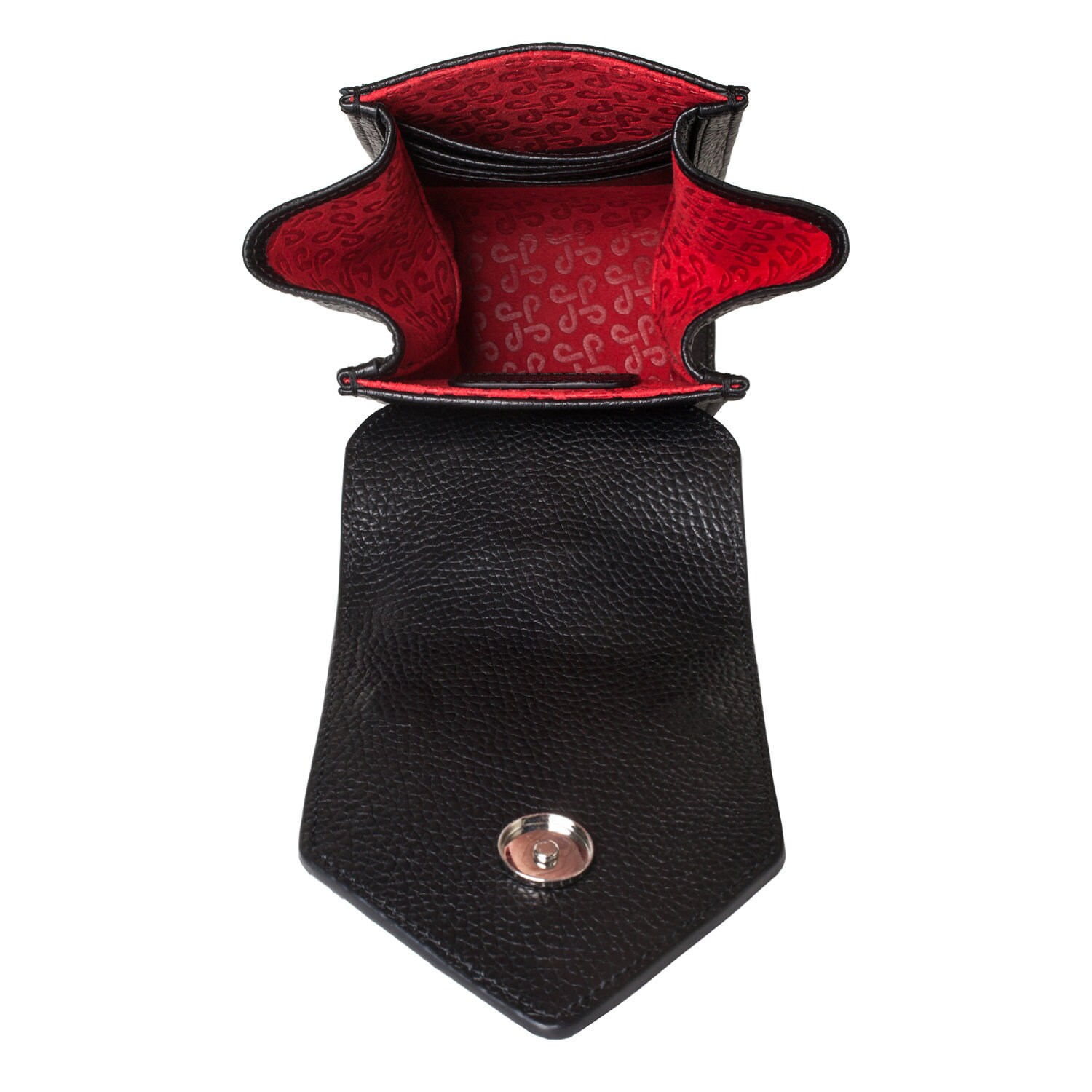 Black genuine leather woman crossbody bag from ukrainian designer Katerina Fox. Fashionable and elegant modern bag KF for bright girls and women. This bag is able to attract attention and highlight your exquisite taste. All accessories for Katerina Fox bags makes the same factory as for Michael §¬ors, Calvin Klein, DKNY and other famous brands.The internal space of a bag is equipped with one spacious compartment, four patch pockets for cards. The bag is closed on the button-magnet. The bag has a short removable handle on wrist.The length of the strap is adjustable. The kit also includes a storage bag.