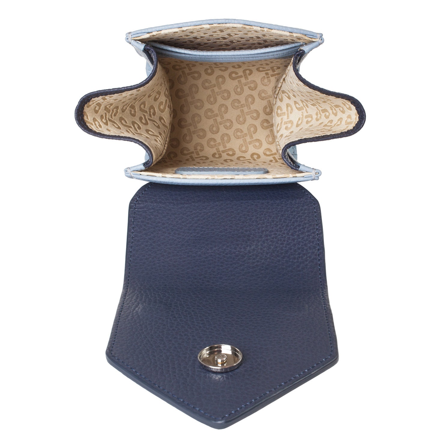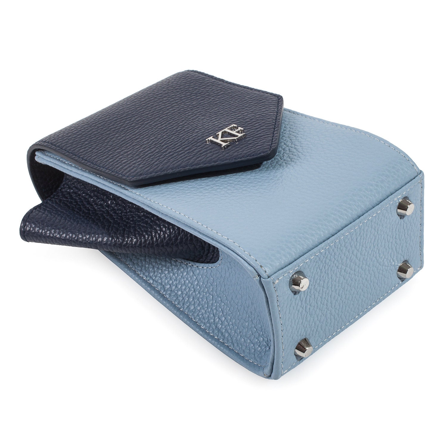 Blue genuine leather woman crossbody bag from ukrainian designer Katerina Fox. Fashionable and elegant modern bag KF for bright girls and women. This bag is able to attract attention and highlight your exquisite taste. All accessories for Katerina Fox bags makes the same factory as for Michael §¬ors, Calvin Klein, DKNY and other famous brands.The internal space of a bag is equipped with one spacious compartment, four patch pockets for cards. The bag is closed on the button-magnet. The bag has a short removable handle on wrist.The length of the strap is adjustable. The kit also includes a storage bag.