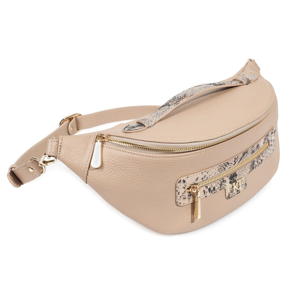 Beige genuine leather woman shoulder bag from ukrainian designer Katerina Fox. Fashionable and elegant modern bag KF for bright girls and women. This bag is able to attract attention and highlight your exquisite taste. Inside the bag is one large compartment and a convenient zippered pocket for small items, closes the bag on the clasp. The bag is comfortable to wear on the shoulder or across the shoulder. If you are planning to buy excellent leather bag at an affordable price, this handbag is the right choice!