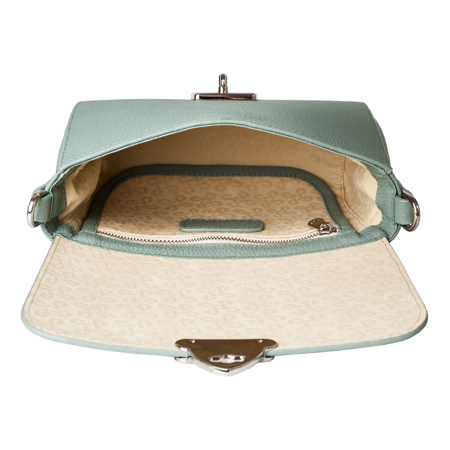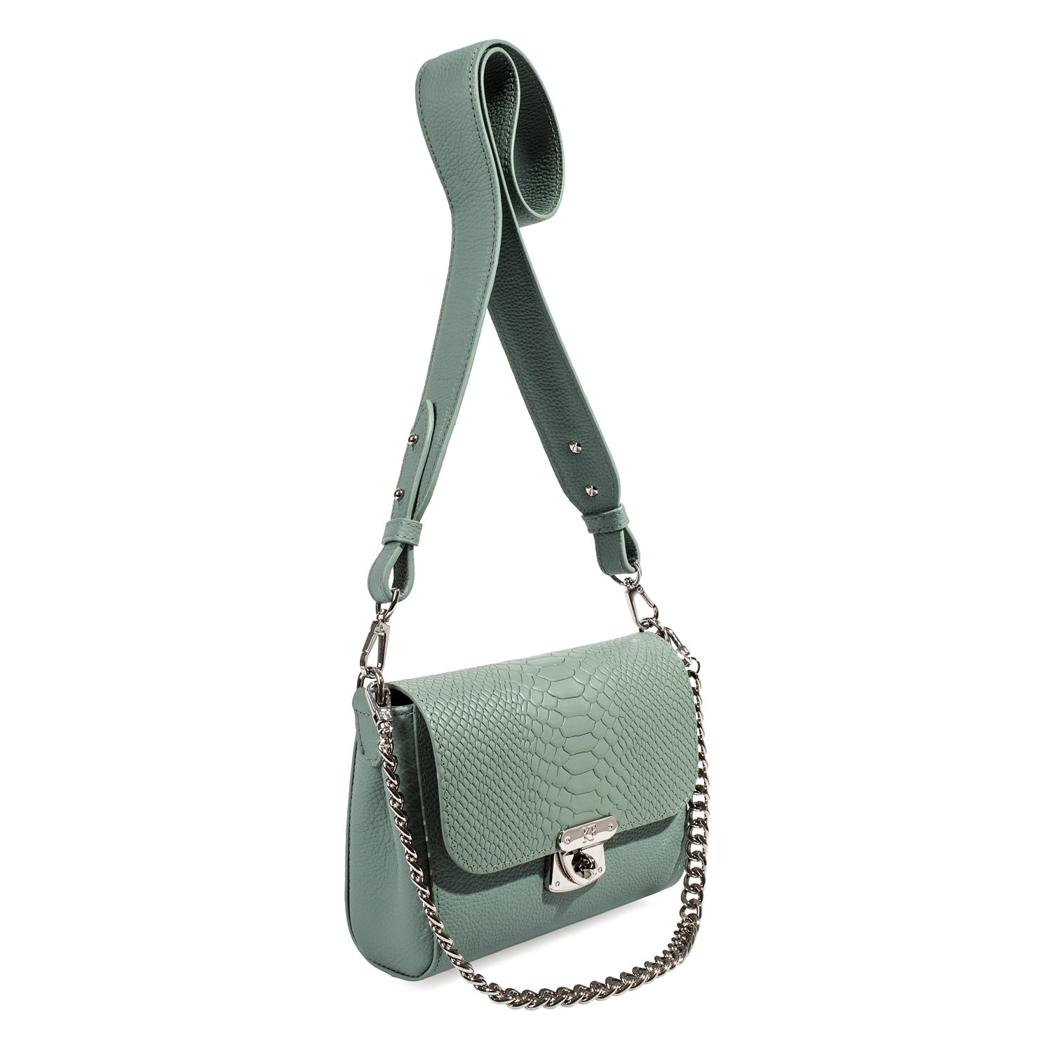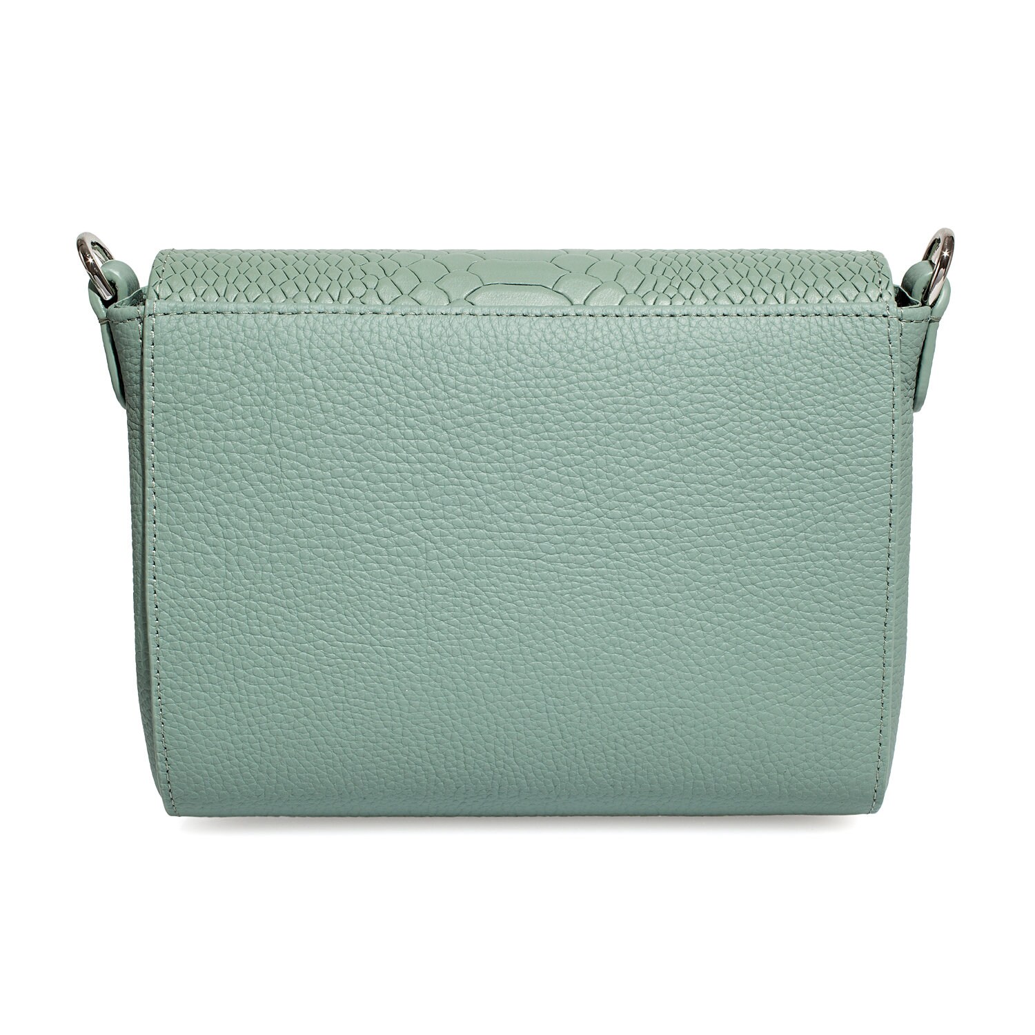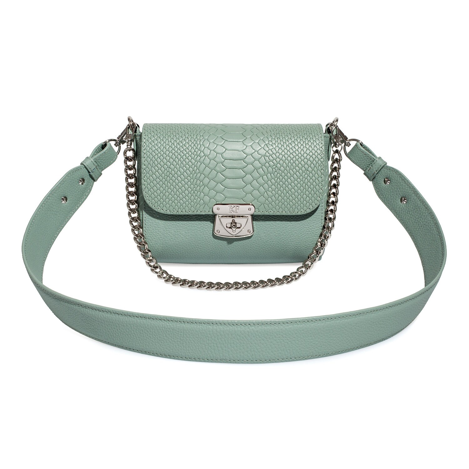 Mint genuine leather woman shoulder bag from ukrainian designer Katerina Fox. Fashionable and elegant modern bag KF for bright girls and women. This bag is able to attract attention and highlight your exquisite taste. Inside the bag is one large compartment and a convenient zippered pocket for small items, closes the bag on the clasp. The bag is comfortable to wear on the shoulder or across the shoulder.