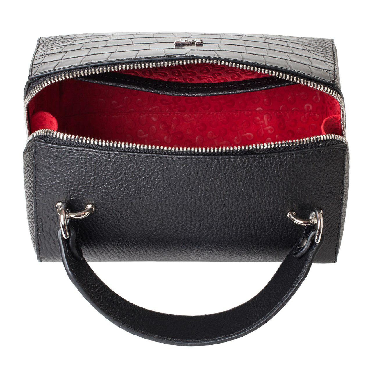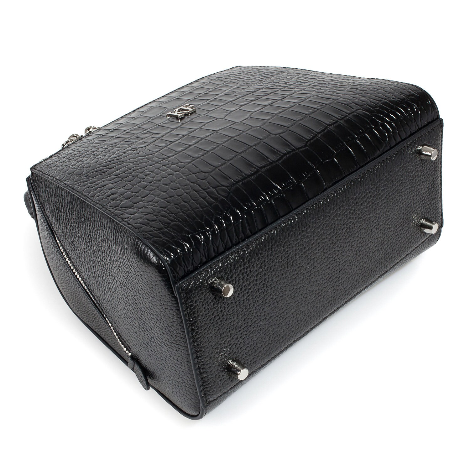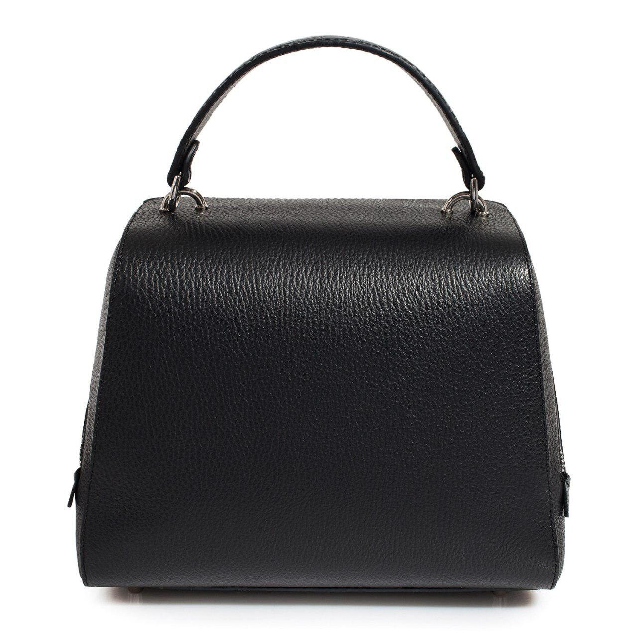 Black genuine leather handbag from ukrainian designer Katerina Fox. This model is designed for women who appreciate the sleek design combined with functionality and comfort. High-quality and reliable hardware ensure long service bags. The internal space of a bag is equipped with one spacious compartment and two patch-pockets and one zipper pocket. The bag is closed with a zipper. The bottom of the bag is protected with metal legs. There is a long handle that allows you to wear the bag on the shoulder. The kit also includes a storage bag.