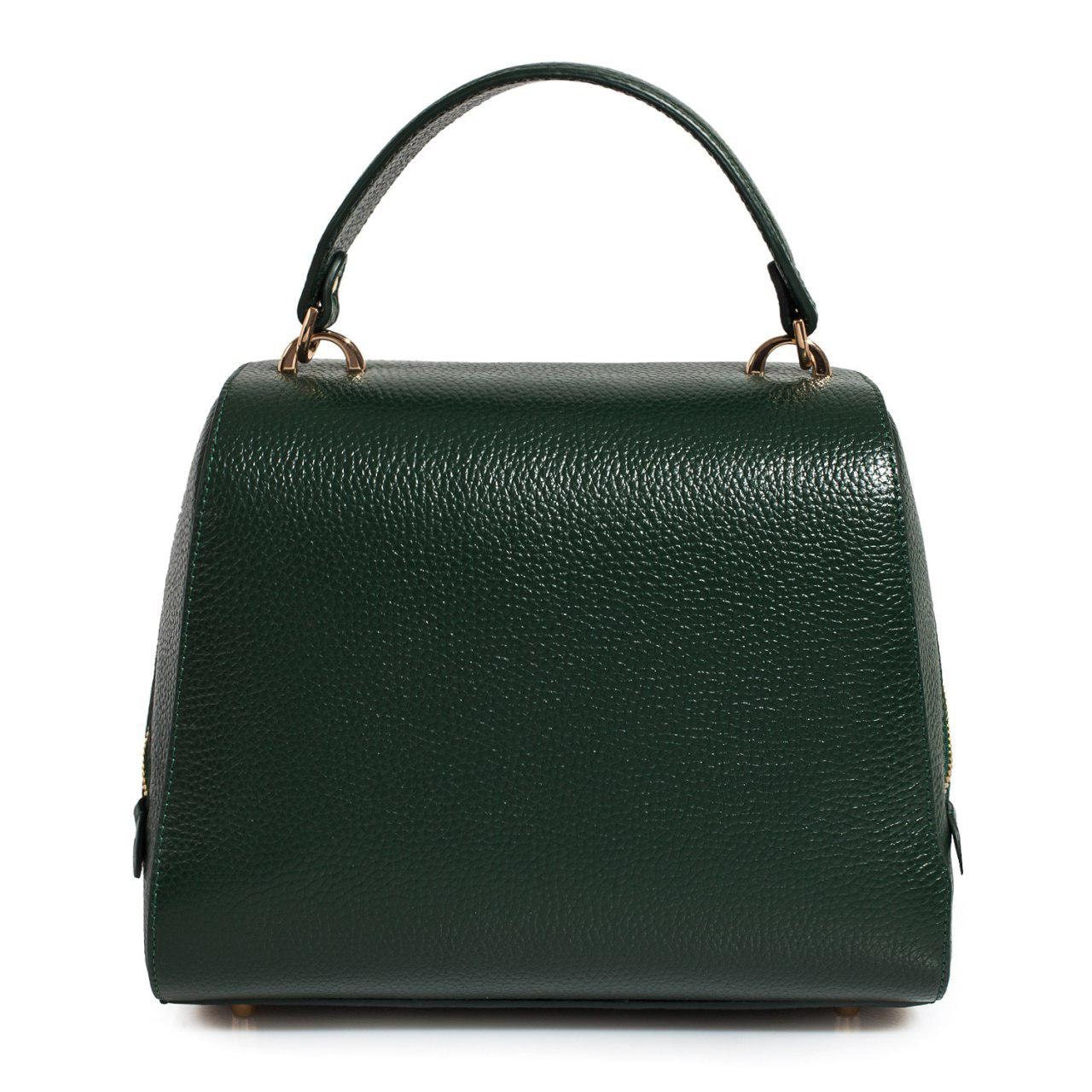 Green genuine leather handbag from ukrainian designer Katerina Fox. This model is designed for women who appreciate the sleek design combined with functionality and comfort. High-quality and reliable hardware ensure long service bags. The internal space of a bag is equipped with one spacious compartment and two patch-pockets and one zipper pocket. The bag is closed with a zipper. The bottom of the bag is protected with metal legs. There is a long handle that allows you to wear the bag on the shoulder. The kit also includes a storage bag.