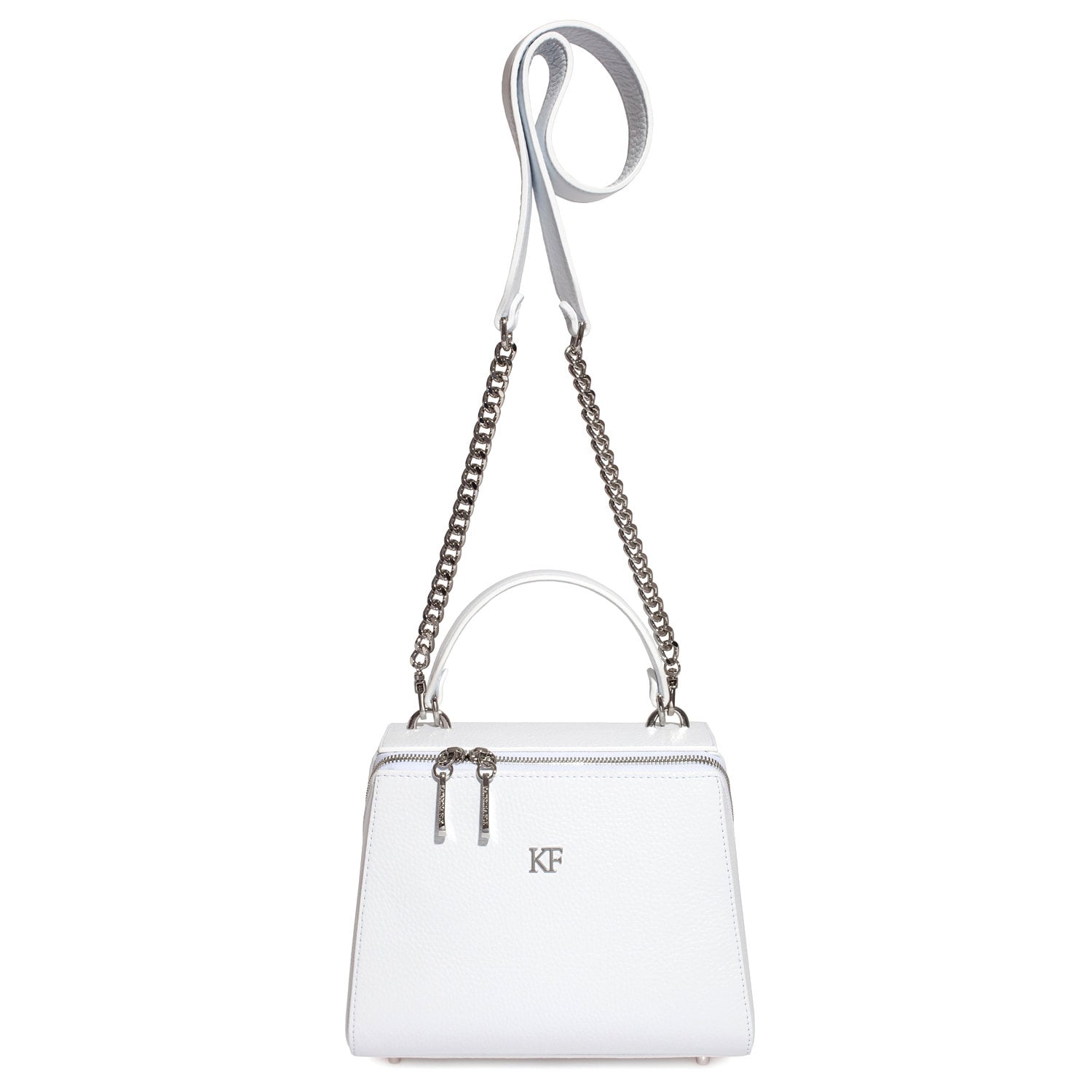 Leather Top Handle Bag, White Leather Handbag Top Handle, Women's Leather Bag KF-3652