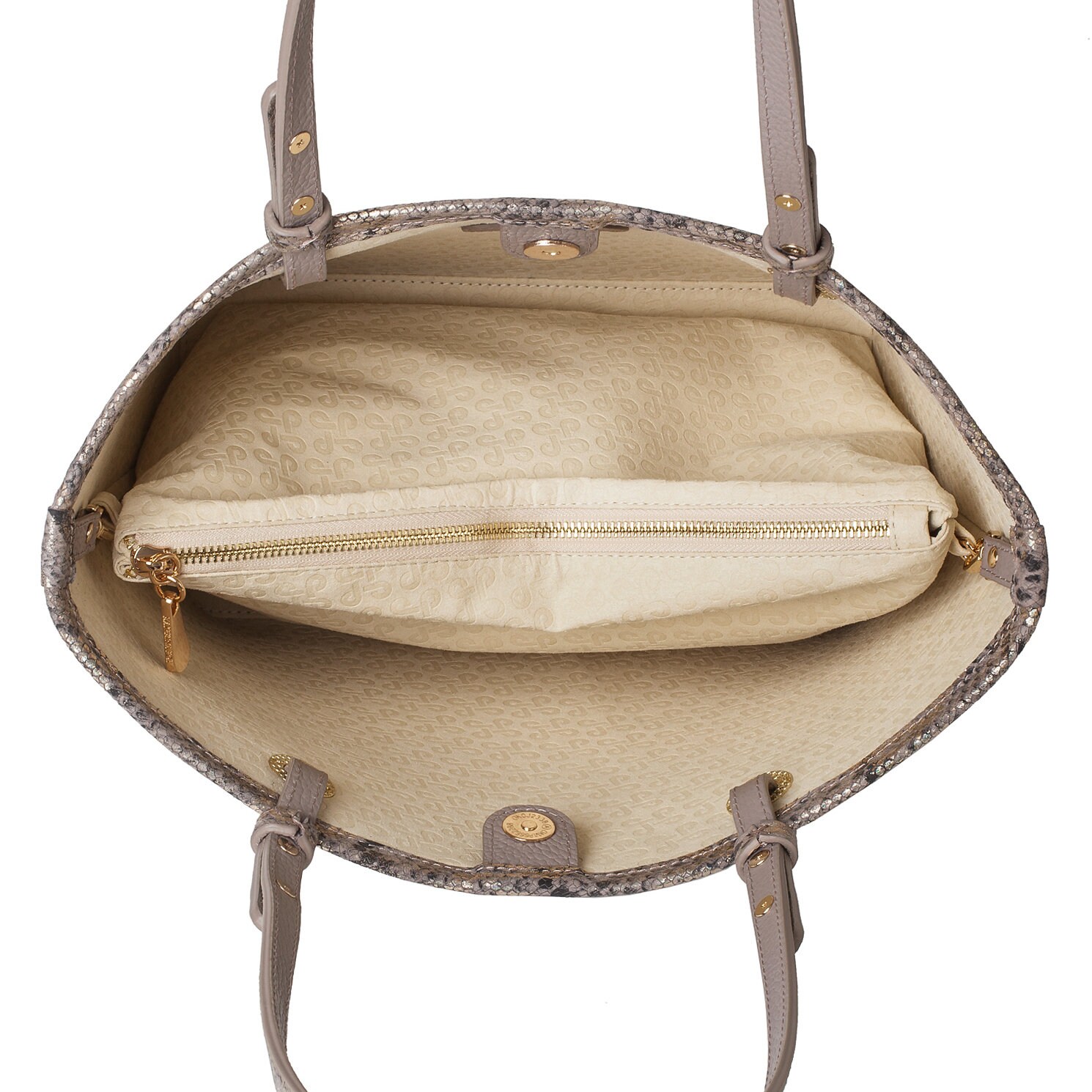 Leather Tote Bag, Gray Beige (light taupe) Leather Tote Bag, Women's Leather Tote Bag KF-3468